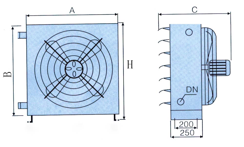 XGS型蒸汽暖風(fēng)機(jī)熱媒接口可根據(jù)用戶要求同側(cè)連接、異側(cè)連接、上下連接均可。