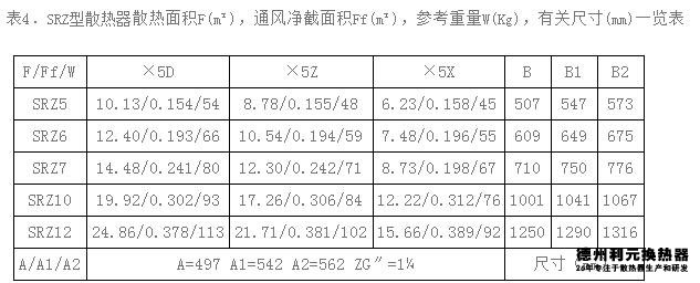 4.SRZ型散熱器工作介質(zhì):蒸汽(<1.0MPa),熱水(<130℃);