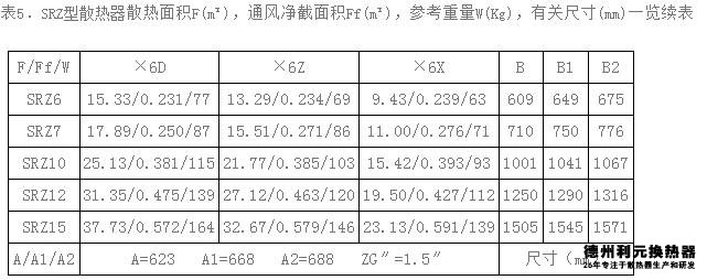 5.SRZ散熱器型號(hào)表示說(shuō)明:SRZ①×②③-④